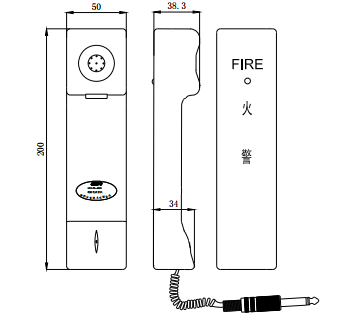 手提式電話分機為:200mm×50mm×38.3mm